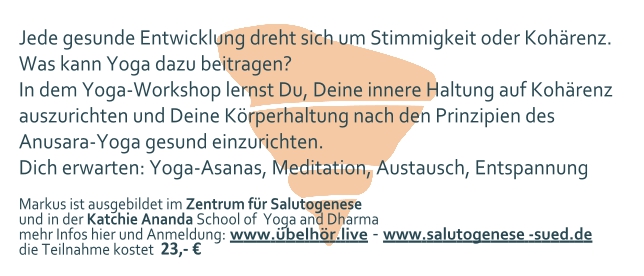 Der Yogaworkshop findet am Sonntag den 10. Dezember 2023 von 9:00 – 12:00 Uhr